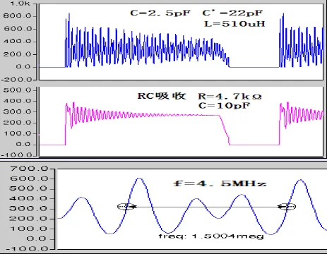 ●RC吸收并联于谐振回路上,C提供谐振能量通道,C 的大小决定吸收程度,最终目的是使R形成功率吸收。