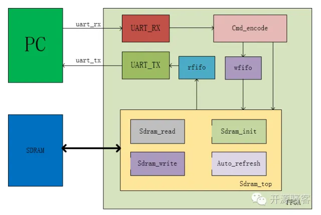 这个项目总的来讲,就是设计一个简单的SDRAM控制器,PC机通过串口发送指令和数据来控制SDRAM芯片实现任意读写操作。