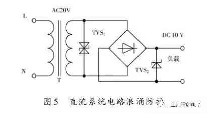 5 结语 (1)TVS具有响应快、功率大、极间电容和体积小、无漏流、应用领域广等优点,可有效地保护TN 电源系统、直流电源、信号线路及晶体管集成电路等,可抑制共模/差模浪涌冲击和ESD/EFT等瞬态浪涌电压的干扰。 (2)电路设计应考虑被保护电路的特性、工作环境及TVS的VC,IPP,VWM,VBR,Ppp等相关参数选择适配的TVS保护器件,TVS接入电路应不影响电路的正常运行,能安全泄放预期瞬态浪涌电流,将危险电压钳位于电路安全耐压值以内。