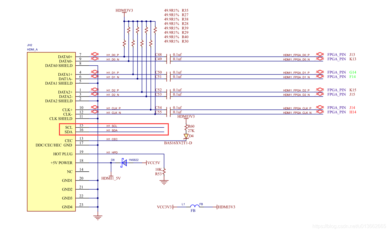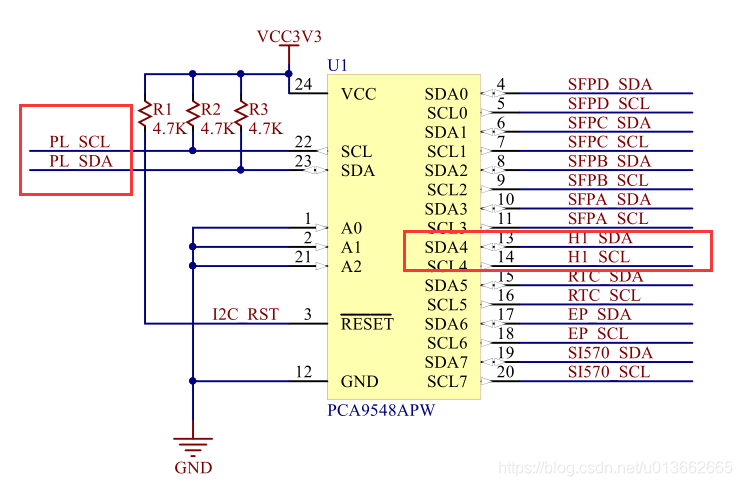我希望按照这篇文章(ZYNQ7000 #1 - PL端模拟HDMI信号输出环境下的Linux界面显示)一样(账号暂无发url权限·····),使用Digilent提供的相关ip实现hdmi视频信号分辨率自动识别。然而我遇到的问题是,我的板子上在hdmi-a接口与片子引出的i2c接口间加入了一块 PCA9548 i2c多路复用器件,原理图如下:
