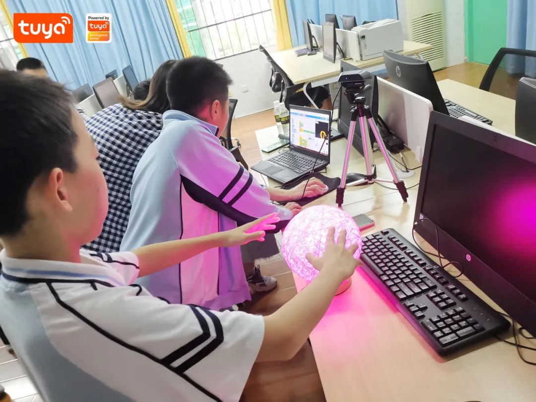 【深圳实验承翰学校「创造学堂」】 英荔教育的目光也不仅限于家庭和学校内,“教育不应该只在学校、教培机构、家庭发生,在文教场馆、商场、甚至酒店都应该有它的一席之地。”陈海权解释道。 然而要落地多元的场景并不容易,既需要教育方面的人才、软件开发的能力,也需要硬件层面的支撑。当前行业内可见的编程课程,要么是单纯的图形化编程、游戏动画制作,要么是单一硬件的多种玩法,无论是广度还是深度上都难以满足教育本身需要的可延续性与可拓展性。各硬件厂商纷纷挖壕沟自建“孤岛”,英荔教育的“跨界玩法”在AI教育行业里没有前例。 为此,英荔教育选择了和全球化AIoT平台涂鸦智能合作开创智能教育生态,走一条没有人走过的路。 在陈海权看来,将AI教育与IoT相结合的难题在于连接。不同品牌不同品类的智能产品要在「ai玩空间」里实现互联互通,既要覆盖尽可能多品类的智能产品,又要让儿童能快速易用地上手操作。 “在硬件底层,我们与涂鸦IoT开发平台实现接入,超过20万款‘Powered by Tuya’智能硬件帮助英荔教育快速搭建AI教育场景”,陈海权表示,涂鸦生态内的智能硬件标准统一,大大简化了英荔将其纳入教育场景中所需的对接过程,降低了AIoT初学者的学习门槛,“让孩子们能轻松成为AIoT的开发者”。 “涂鸦智能是全球化的AI+IoT平台,在全球市场均有布局和经营,我们希望借势涂鸦智能的开放生态,真正实现智能化转型,同时发掘全球范围内的AIoT教育领域更多商业机会。”在陈海权看来,英荔教育与涂鸦智能可以共同赋能泛家居的企业和酒店等,为其提供差异化的优势,同时也赋能给C端,让每个家庭都能接受AI教育。 例如,今年下半年英荔教育就联合涂鸦智能为北京顶尖的国际学校之一——北京王府学校打造了「智能编程」的素质课程。作为北京市首家中外合作制学校,北京王府学校曾获“中国民办十大知名品牌学校”及“2014 年度最具影响力国际教育品牌”等荣誉。而「智能编程」的素质课程一经推出,就成为其中最热门的素质课,在50 门可选课程中报名人数位列第一。
