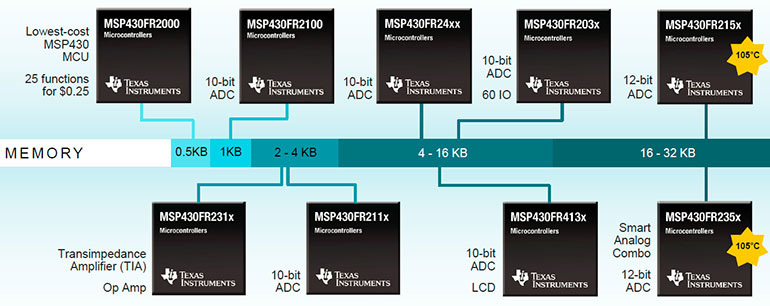 1. 德州仪器 (TI) 提供一系列支持 FRAM 的 MSP430 MCU。
