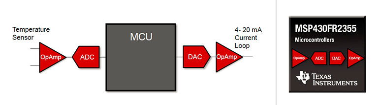 TI 开发的许多参考设计都利用了新的模拟支持。例如,四个智能模拟组合模块可用于实现电流回路温度变送器等系统(图 3)。其他参考设计包括烟雾探测器和恒温器支持。
