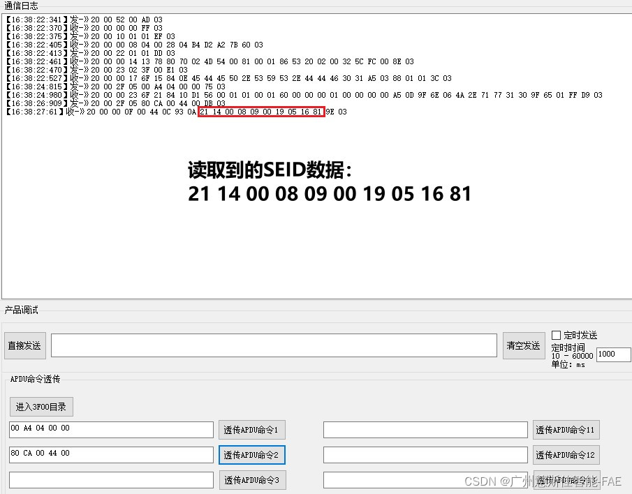 - 步骤3:将手机放在HSJ800TP模块上,通过HSJTools调试工具,发送读取SEID号命令