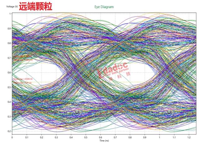 不过,通过观察对比,还是能发现双DIE颗粒容性较大的特点,下面是单DIE方案的远端颗粒眼图,相比上图,信号的上升沿明显陡峭很多。