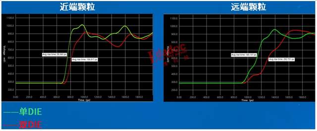 为了能更清楚的说明这个问题,高速先生分别在近端和远端对比了单、双DIE颗粒在相同激励下的信号上升时间。