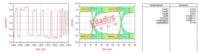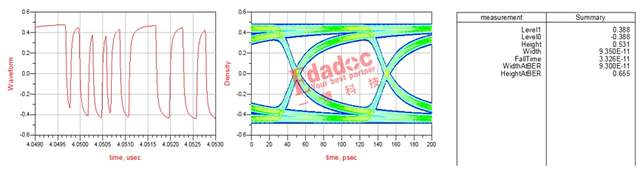 结果是下面这样的:眼高655mV,眼宽93ps。