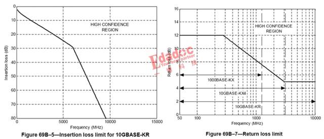 我们就以大家比较熟悉的10GBase-KR信号为例,来介绍今天的猪脚“ILD”。先请出大家比较熟的插损和回损的协议要求,10Gbps信号,我们在插损指标上关心的是5GHz位置的损耗情况,为什么10Gbps信号看的是5GHz频点呢?这个可以翻翻刚写不久的这篇文章《明明我说的是25G信号,你却让我看12.5G的损耗?》,看完相信就不会再有疑问了。另外顺便提下回损,回损在协议中一般会覆盖到基频的2倍,10GBase-KR插损回损的协议指标就如下所示了。