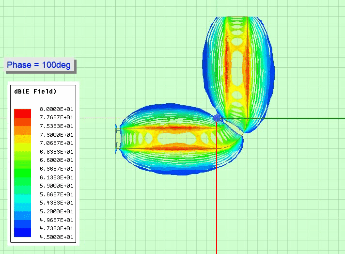 那为什么拐角半径小了,会那么影响高频性能呢?我们来看看在高频时20mil半径拐角和100mil半径拐角的电场图,应该可以发现问题。 首先是20mil拐角的电场图,如下所示: