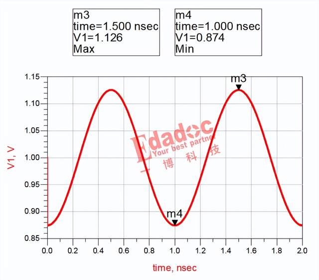 其中下图就是这个输入电流的曲线,能看到它就是一个从0A到4A,也就是变化电流4A,频率是1GHz的波形。